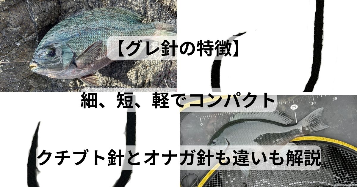 【グレ針の特徴】細軸でコンパクト。伊勢尼型がベース。クチブト針とオナガ針の違いも。