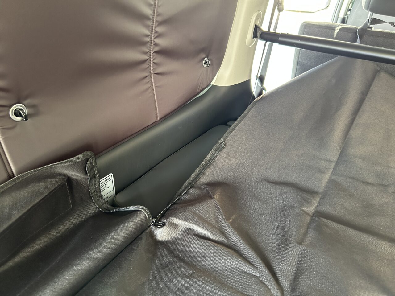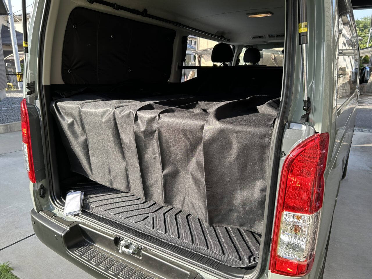 ハイエースのベッドキットの保護のために汎用品の「防止・大きいサイズ・トランクシート」を取り付けました。