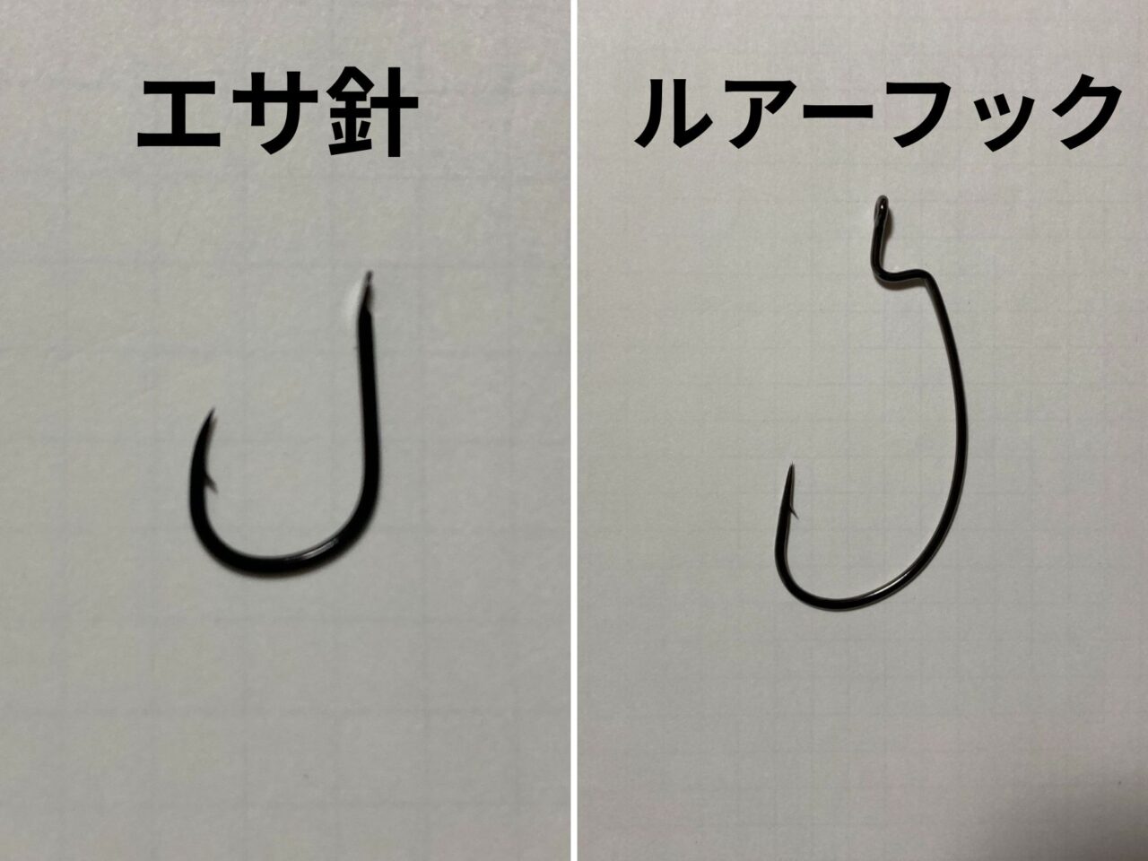 エサ釣りの針とルアーの針では大きく形状が異なります。