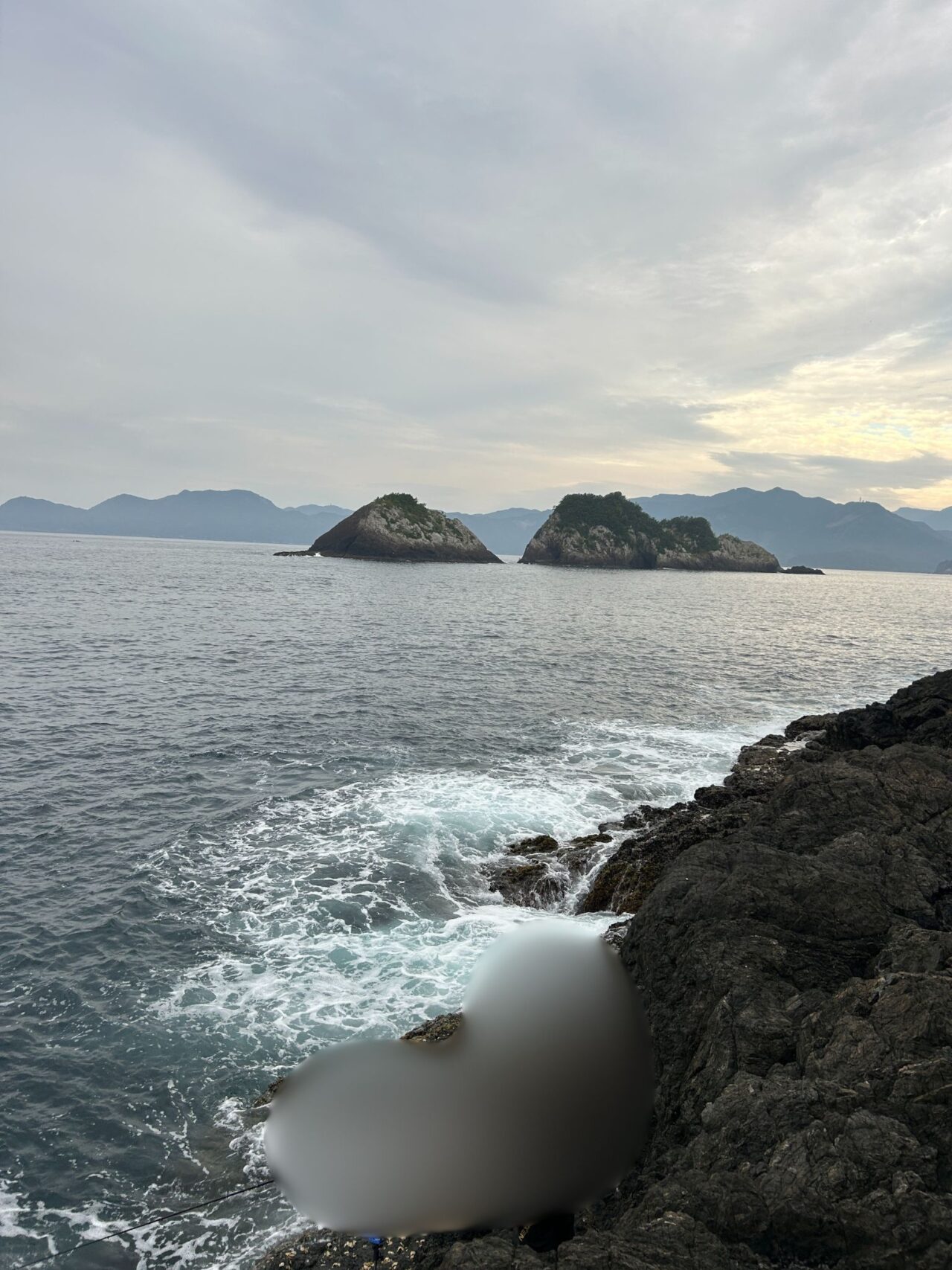 船着の少し左前に一級磯であるドマクラや筆島が見えます。