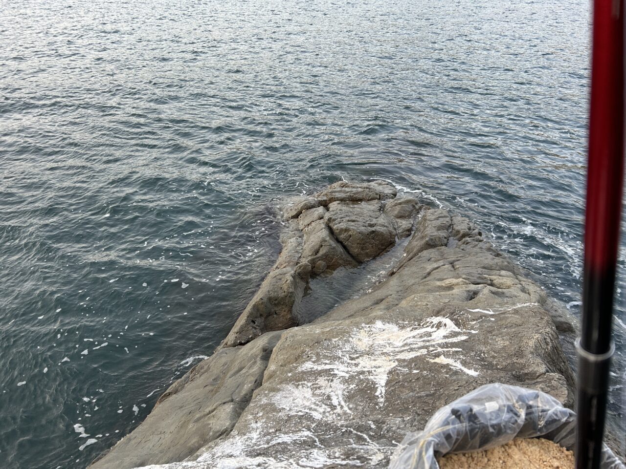 撒きエサを撒いてみるが魚の姿は確認できず、ほとんど潮も動いてない感じ。