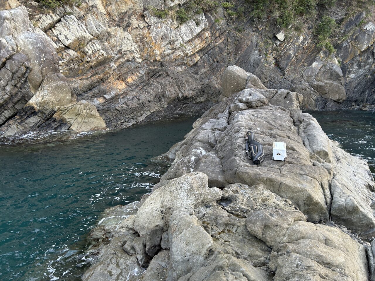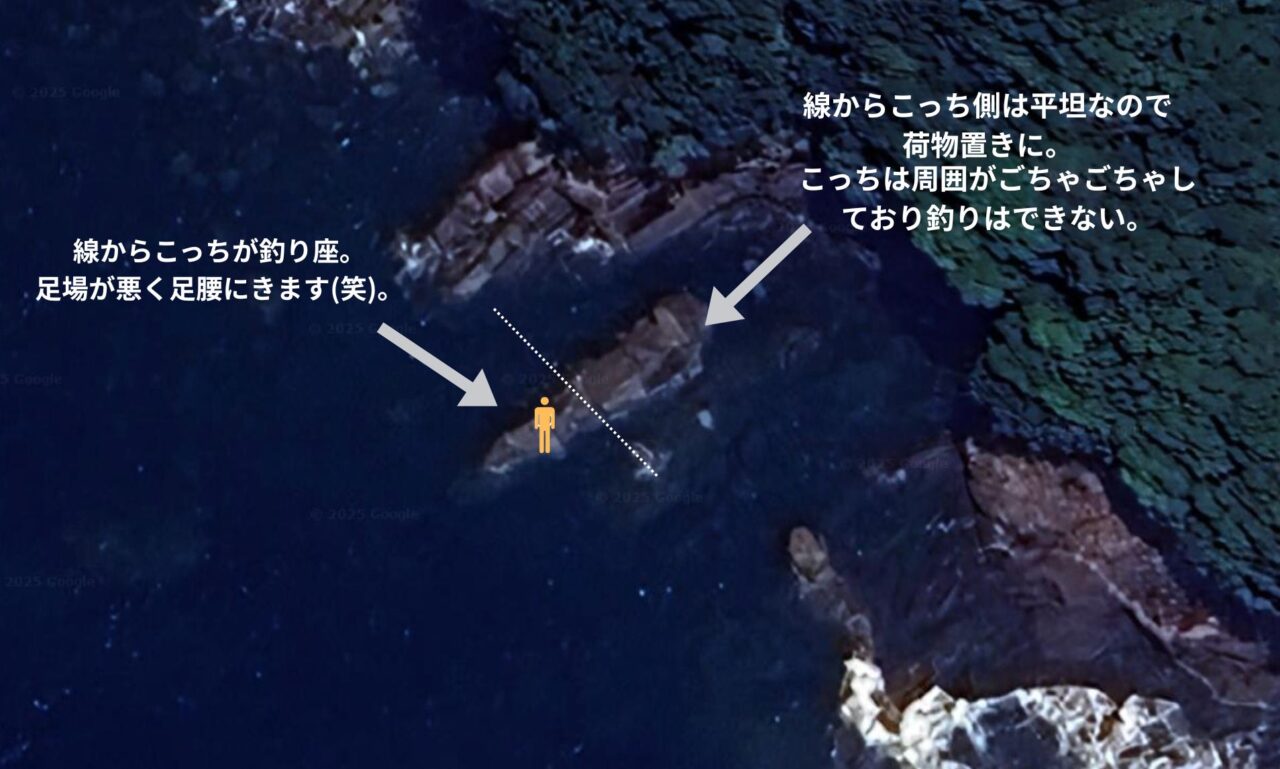 今回、乗せて頂いた磯場は釣り座のどこに立っても駆け下がりで立ってるだけでもしんどい磯場でした(笑)。