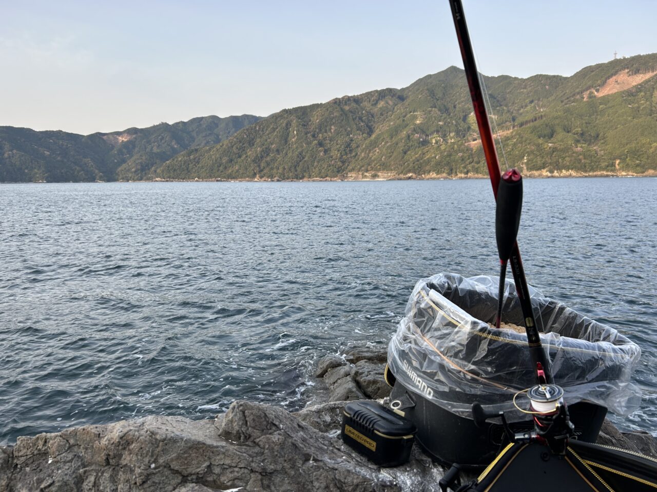 撒きエサを準備して仕掛けを作って釣り開始できたのが、磯場に渡ってから1時間も経過してしまいました(笑)。