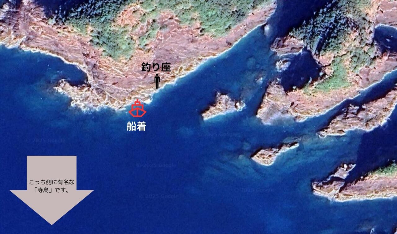 風、波避けのために沖磯でも裏になるポイントにおろしてもらいました。