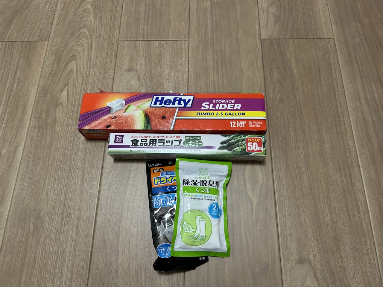 - 用意するもの:除湿剤、フリーザーパック、食品用ラップ