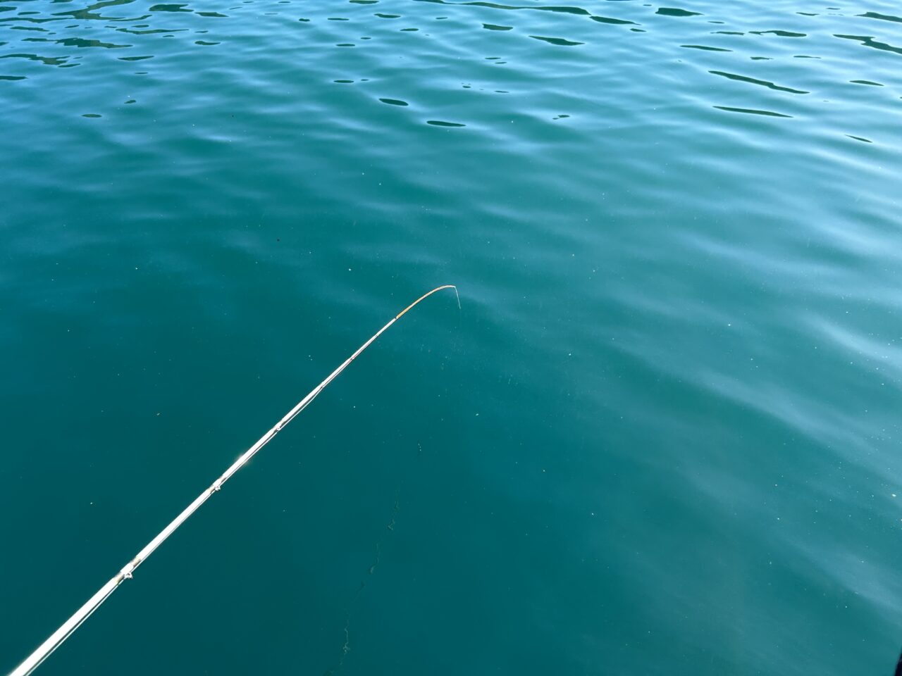 ダンゴを投入したら竿先を海面に向けるように下げるとスムーズに落ちていきます。