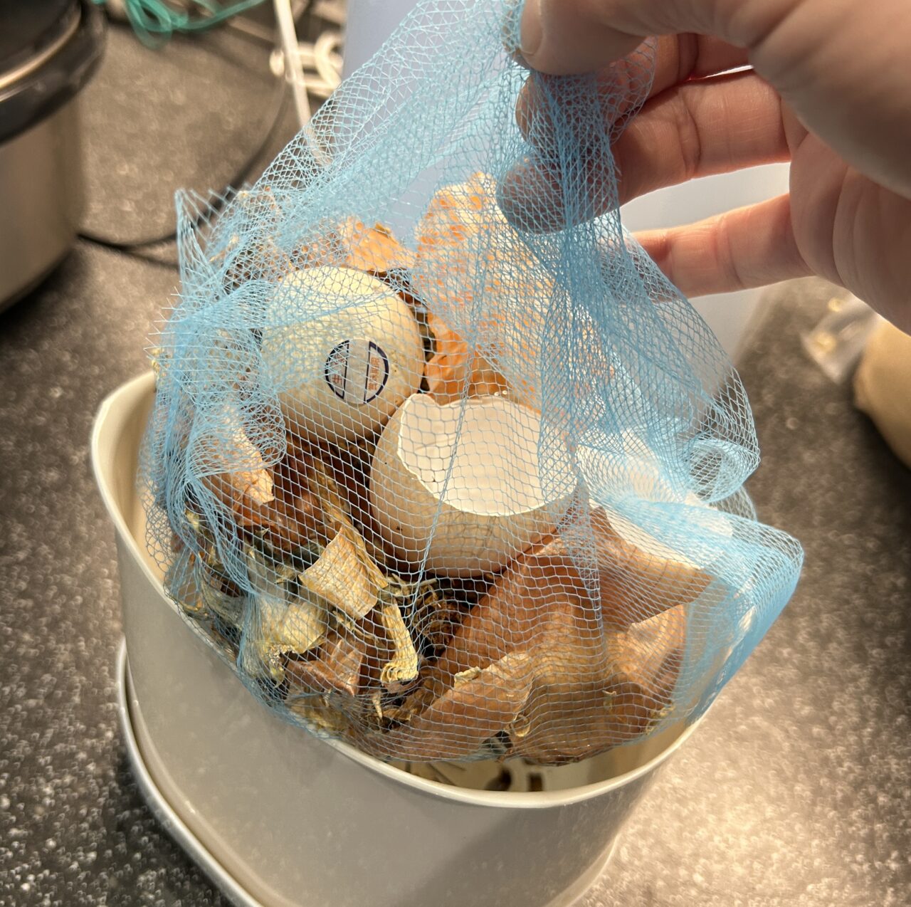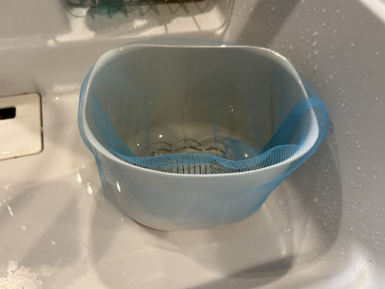 生ゴミを入れるバスケットに水切りネットを装着してシンクに置きます。