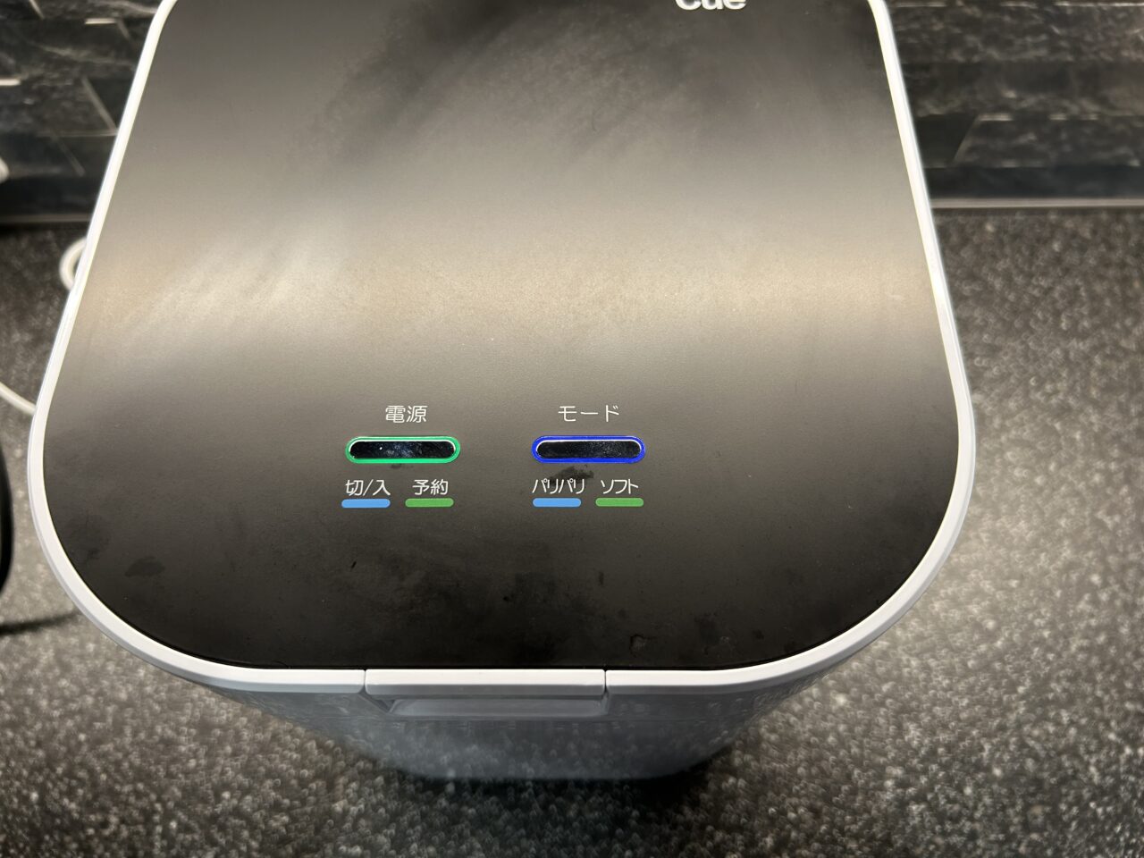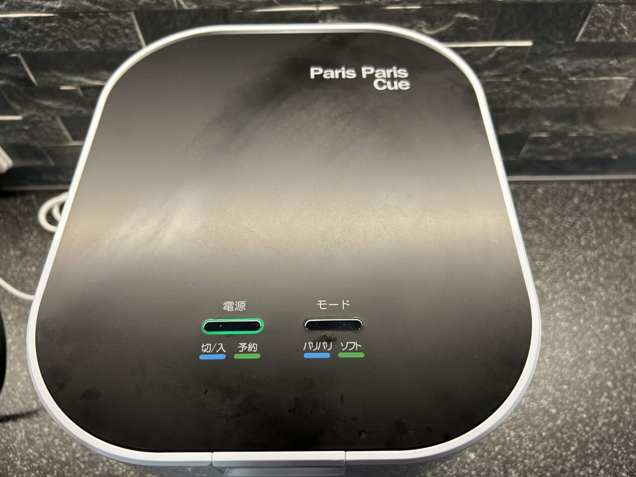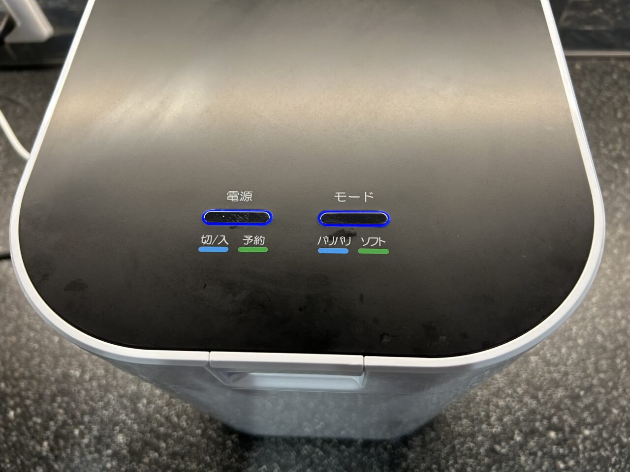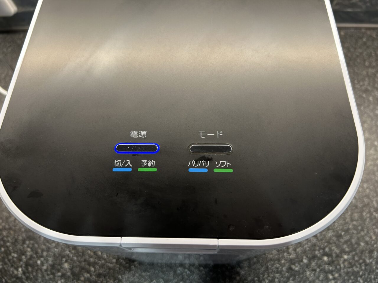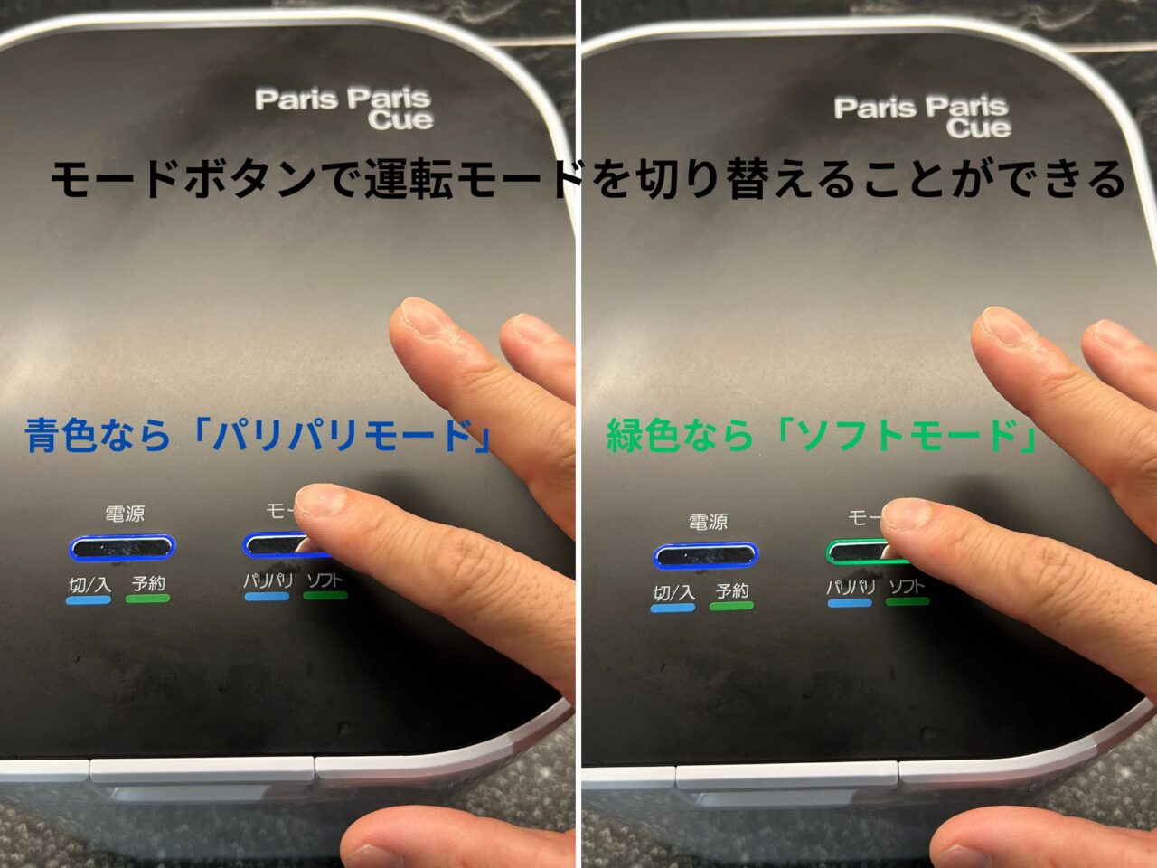 モードボタンが点滅している間は1回触れるごとにパリパリ(青色)、ソフト(緑色)とモードを切り替えることができます。