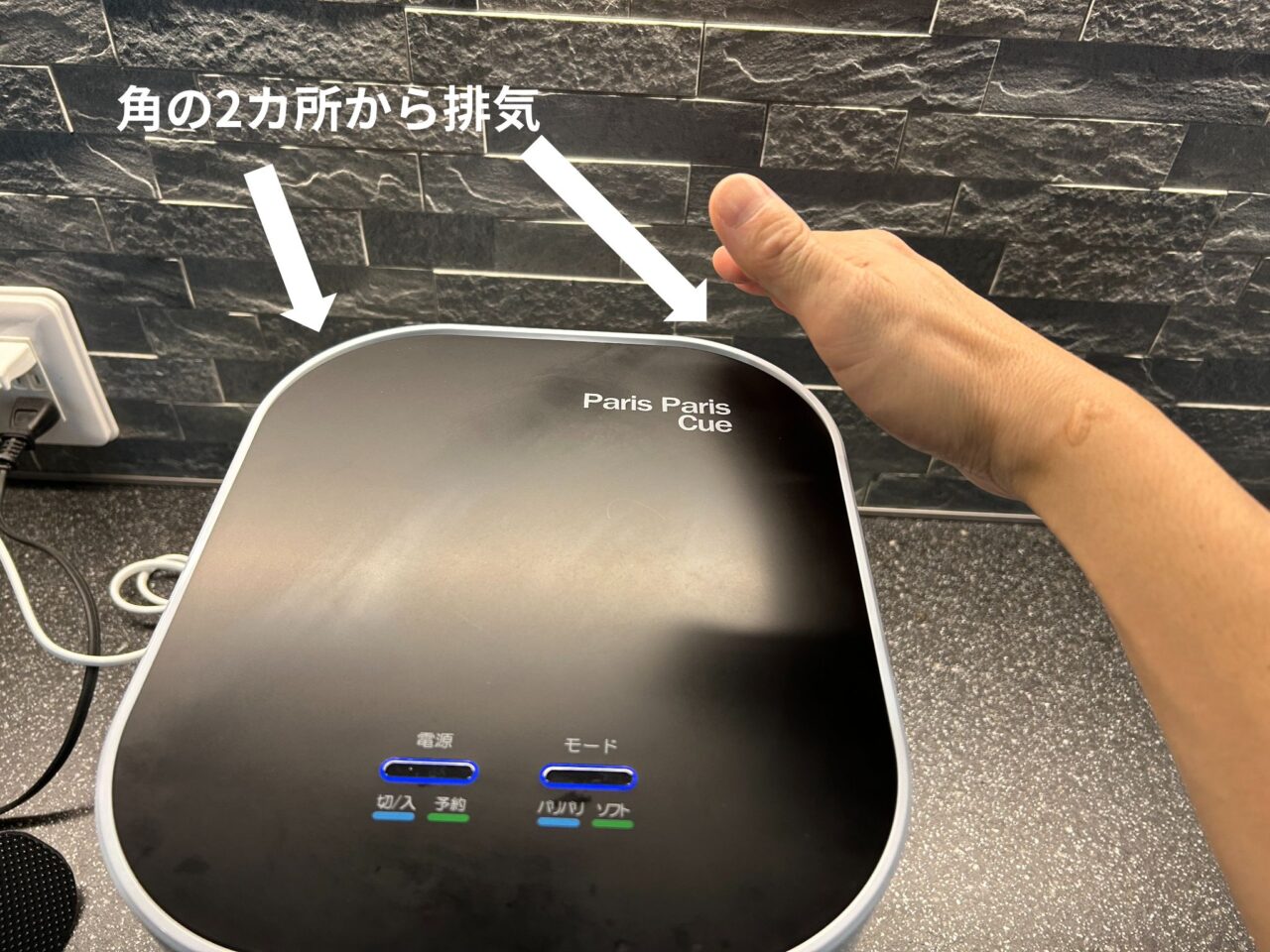 運転開始後、本体の上面にある排気口から排気されていることを確認します。